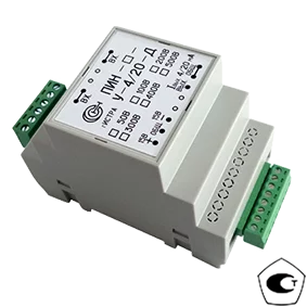 Преобразователи измерительные серии ПИН-_-У-4/20-Д предназначены для преобразования напряжения постоянного, переменного и импульсных токов с гальванической развязкой входной цепи цепей контроля. Крепится на DIN-рейку.