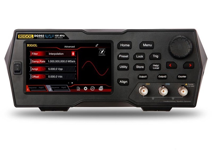 Универсальный генератор сигналов DG992 обладает низким уровнем собственных шумов и высокой функциональностью. Генератор сигналов Rigol DG992 предлагает инженерам большое количество форм сигналов, в т.ч. псевдослучайные последовательности, сигнал RS-232, программируемые последовательности, а также различные виды модуляции.