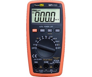 | Мультиметры переносные ПрофКиП МП-111 предназначены для измерения напряжения постоянного и переменного тока, силы постоянного и переменного тока, сопротивления постоянному току, электрической ёмкости и частоты. Приборы оснащены жидкокристаллическими дисплеями для индикации результатов измерений. Мультиметры отличает компактность, незначительная масса и возможность автономного питания в различных условиях эксплуатации. Мультиметры предназначены для использования в цеховых и лабораторных условиях, при наладке и ремонте радиотехнического оборудования, электронных схем и узлов автоматики, а также при тестировании и ремонте промышленных электросетей. Приборы являются многофункциональными приборами с ручным выбором режимов измерений с помощью переключателя и входными утепленными в корпус гнездами колонкового типа. Мультиметры представляют собой надежные компактные цифровые приборы с батарейным питанием |