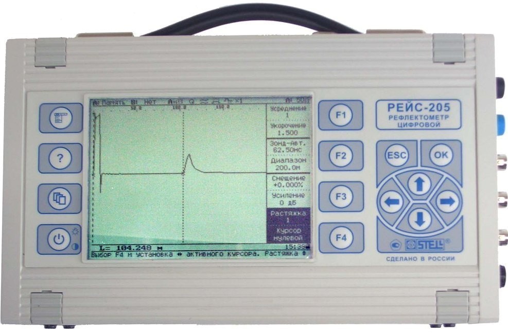 РЕЙС-205 это измерительная система, которая представляет собой совокупность двух приборов в одном корпусе: самый совершенный российский импульсный рефлектометр и кабельный измерительный мост.