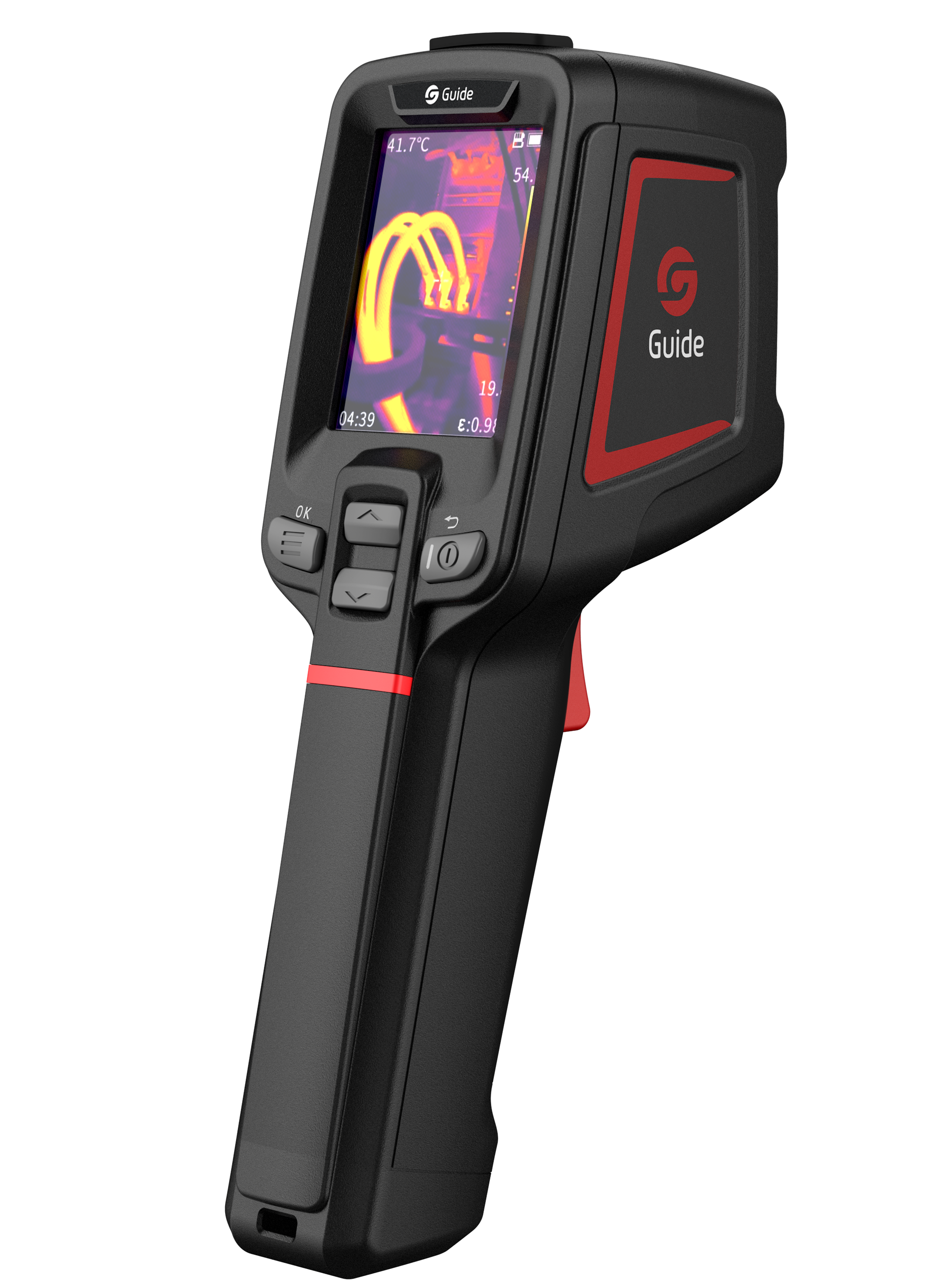 Пистолетный форм-фактор, с удобным расположением кнопок управления, обеспечивает возможность пользования прибором одной рукой. Как диагностический инструмент профессионального класса, тепловизор Guide E2 снабжен цифровой камерой и поддерживает несколько вариантов наложения инфракрасного изображения и изображения видимого спектра. Это дает возможность быстро идентифицировать источники температурных аномалий. Наличие лазерного указателя упрощает наведение изделия на целевой объект. В приборе реализована функция трансляции видеопотока и дистанционного управления съемкой с помощью пользовательского коммуникатора.