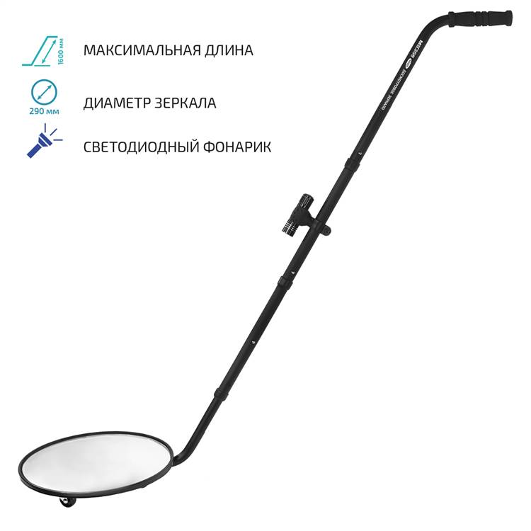 МЕГЕОН 46001- это досмотровое зеркало с удлиняющейся рукояткой, предназначенное для осмотра транспортных средств на контрольно-пропускных пунктах, пограничных участков и учреждений закрытого типа. Будет необходимо тем, чья деятельность связана с осуществлением инспекции труднодоступных мест автомобилей и скрытых от прямого взгляда полостей.